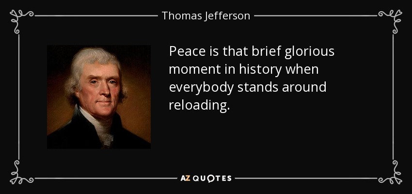 Peace is that brief glorious moment in history when everybody stands around reloading.