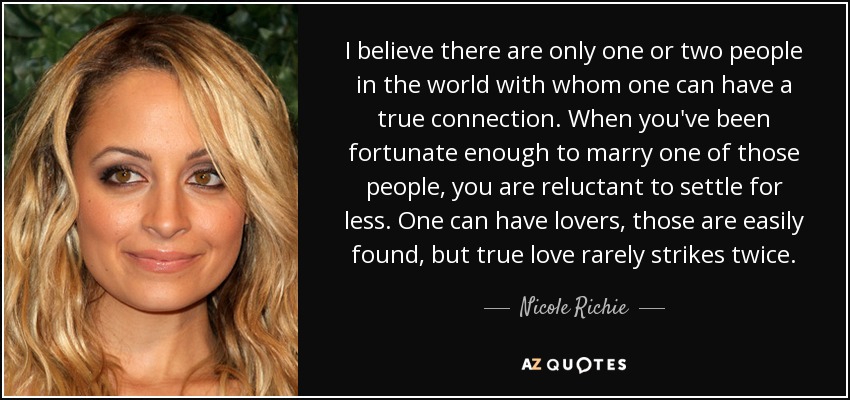 I believe there are only one or two people in the world with whom one can have a true connection. When you've been fortunate enough to marry one of those people, you are reluctant to settle for less. One can have lovers, those are easily found, but true love rarely strikes twice.