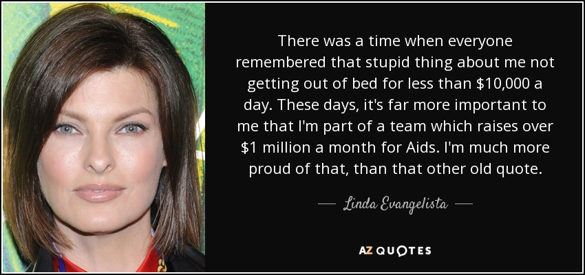 There was a time when everyone remembered that stupid thing about me not getting out of bed for less than $10,000 a day. These days, it's far more important to me that I'm part of a team which raises over $1 million a month for Aids. I'm much more proud of that, than that other old quote.