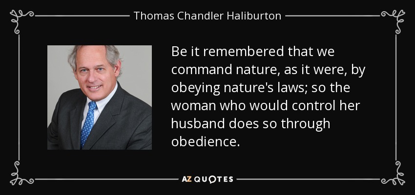 Be it remembered that we command nature, as it were, by obeying nature's laws; so the woman who would control her husband does so through obedience.