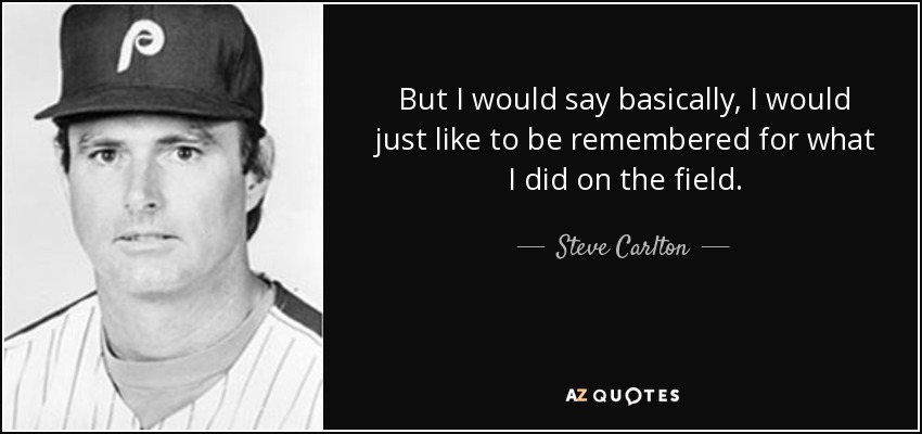 But I would say basically, I would just like to be remembered for what I did on the field.