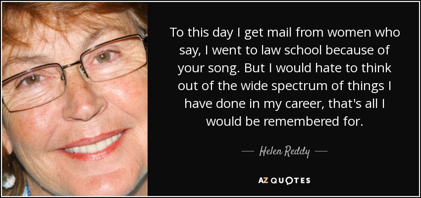 To this day I get mail from women who say, I went to law school because of your song. But I would hate to think out of the wide spectrum of things I have done in my career, that's all I would be remembered for.