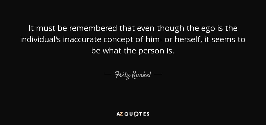 It must be remembered that even though the ego is the individual's inaccurate concept of him- or herself, it seems to be what the person is.