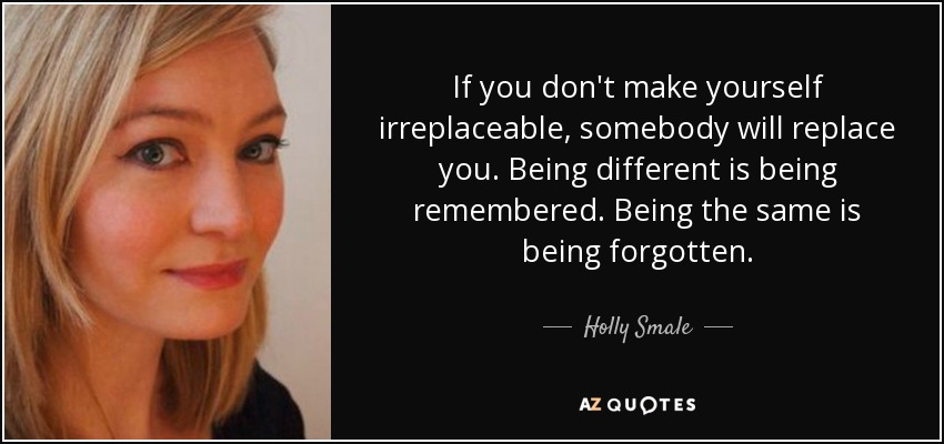 If you don't make yourself irreplaceable, somebody will replace you. Being different is being remembered. Being the same is being forgotten.