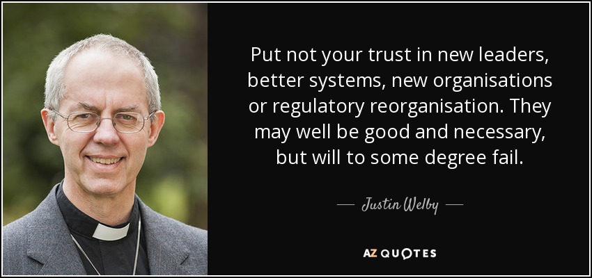 Put not your trust in new leaders, better systems, new organisations or regulatory reorganisation. They may well be good and necessary, but will to some degree fail.