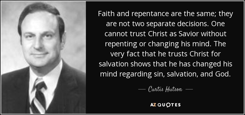 Faith and repentance are the same; they are not two separate decisions. One cannot trust Christ as Savior without repenting or changing his mind. The very fact that he trusts Christ for salvation shows that he has changed his mind regarding sin, salvation, and God.
