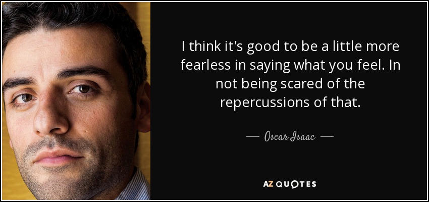 I think it's good to be a little more fearless in saying what you feel. In not being scared of the repercussions of that.