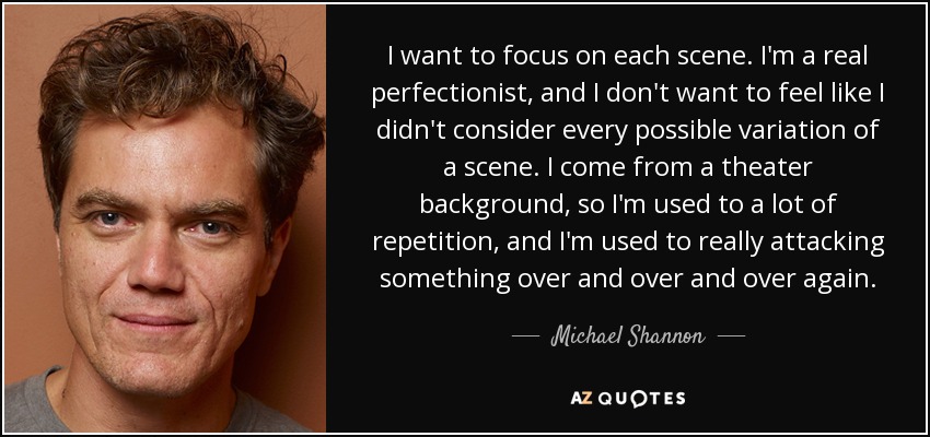 I want to focus on each scene. I'm a real perfectionist, and I don't want to feel like I didn't consider every possible variation of a scene. I come from a theater background, so I'm used to a lot of repetition, and I'm used to really attacking something over and over and over again.