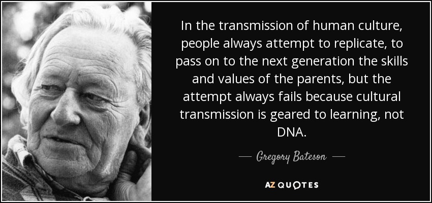 In the transmission of human culture, people always attempt to replicate, to pass on to the next generation the skills and values of the parents, but the attempt always fails because cultural transmission is geared to learning, not DNA.