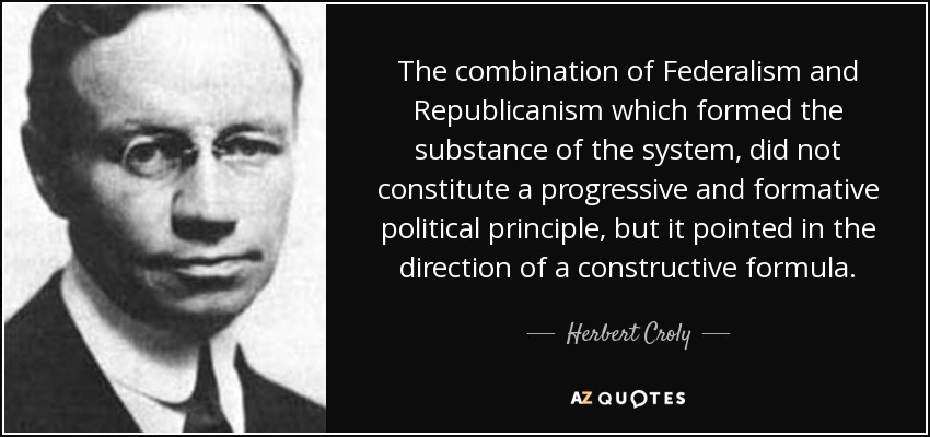 The combination of Federalism and Republicanism which formed the substance of the system, did not constitute a progressive and formative political principle, but it pointed in the direction of a constructive formula.