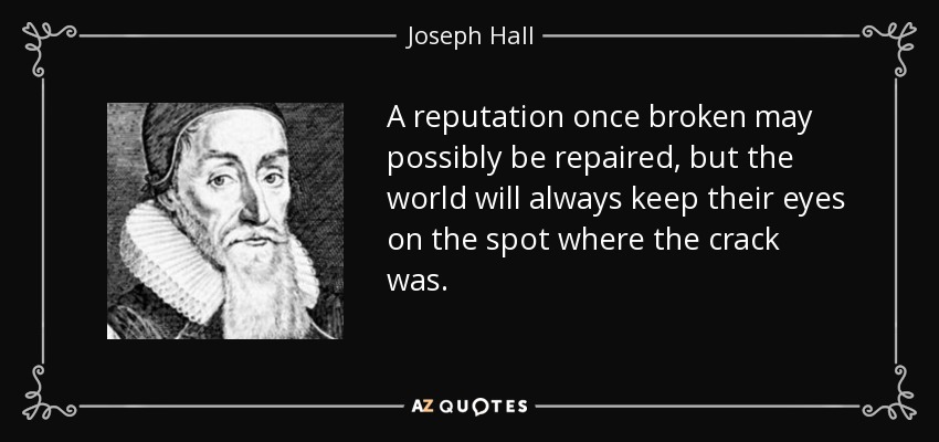 A reputation once broken may possibly be repaired, but the world will always keep their eyes on the spot where the crack was.