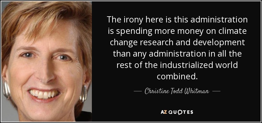 The irony here is this administration is spending more money on climate change research and development than any administration in all the rest of the industrialized world combined.