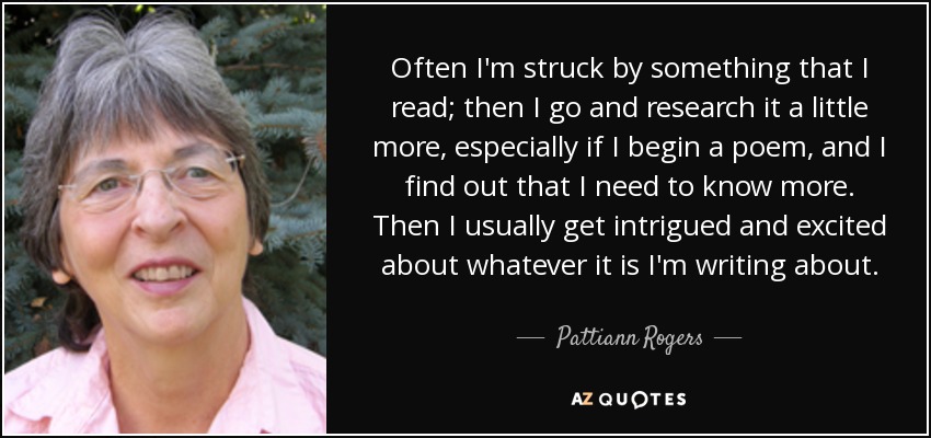 Often I'm struck by something that I read; then I go and research it a little more, especially if I begin a poem, and I find out that I need to know more. Then I usually get intrigued and excited about whatever it is I'm writing about.