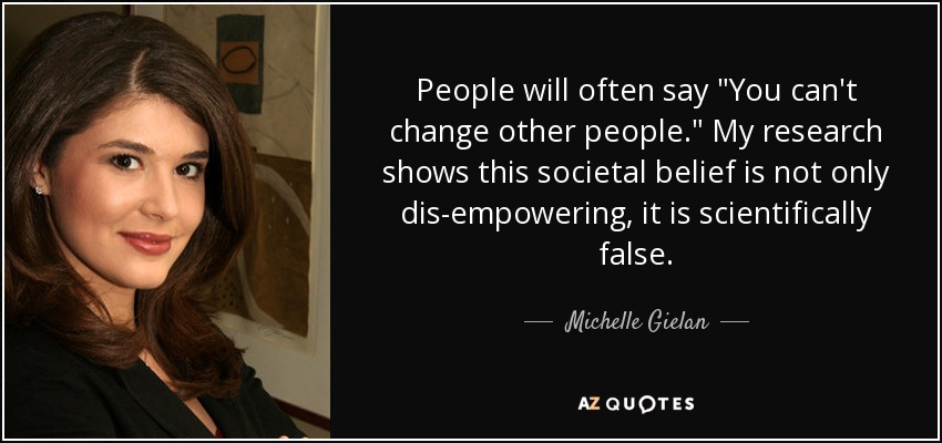 People will often say "You can't change other people." My research shows this societal belief is not only dis-empowering, it is scientifically false.