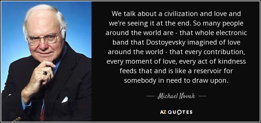 We talk about a civilization and love and we're seeing it at the end. So many people around the world are - that whole electronic band that Dostoyevsky imagined of love around the world - that every contribution, every moment of love, every act of kindness feeds that and is like a reservoir for somebody in need to draw upon.