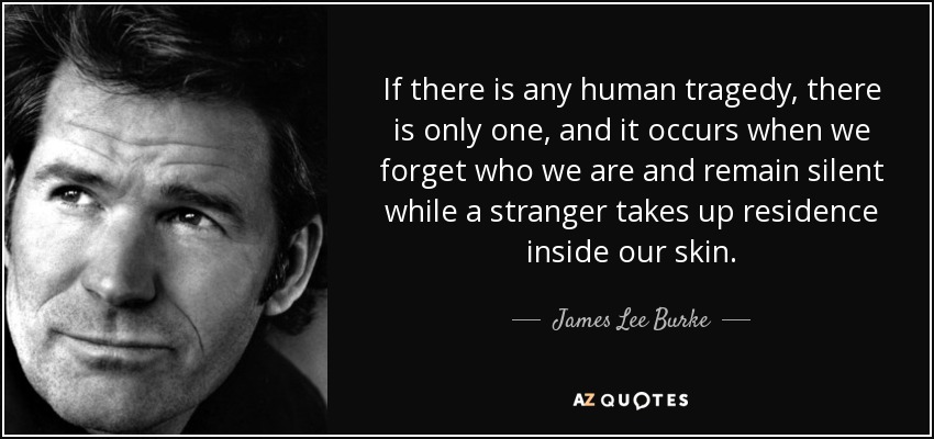 If there is any human tragedy, there is only one, and it occurs when we forget who we are and remain silent while a stranger takes up residence inside our skin.
