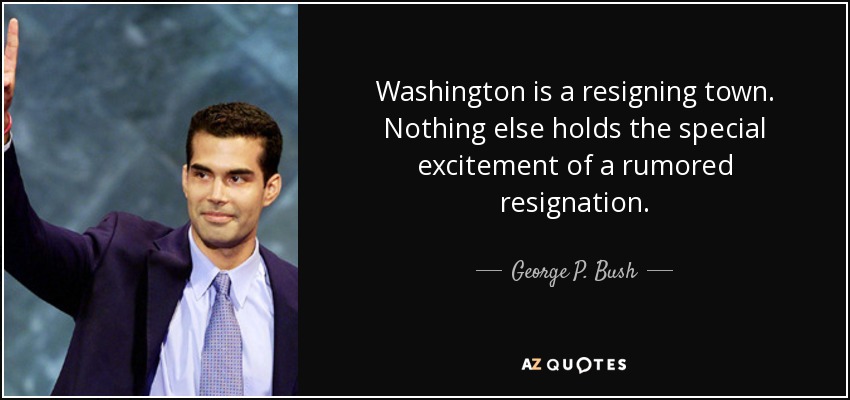 Washington is a resigning town. Nothing else holds the special excitement of a rumored resignation.