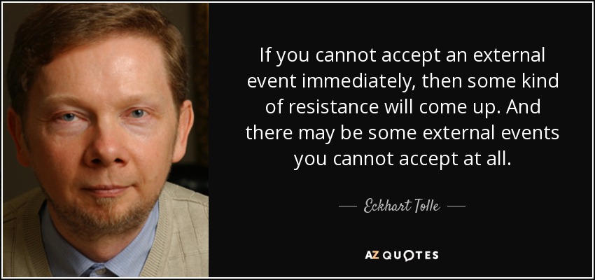 If you cannot accept an external event immediately, then some kind of resistance will come up. And there may be some external events you cannot accept at all.