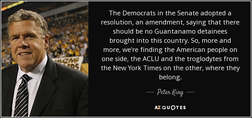 The Democrats in the Senate adopted a resolution, an amendment, saying that there should be no Guantanamo detainees brought into this country. So, more and more, we're finding the American people on one side, the ACLU and the troglodytes from the New York Times on the other, where they belong.