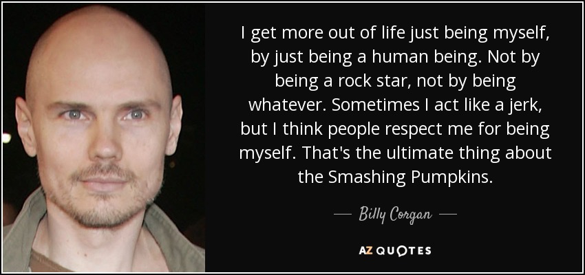 I get more out of life just being myself, by just being a human being. Not by being a rock star, not by being whatever. Sometimes I act like a jerk, but I think people respect me for being myself. That's the ultimate thing about the Smashing Pumpkins.