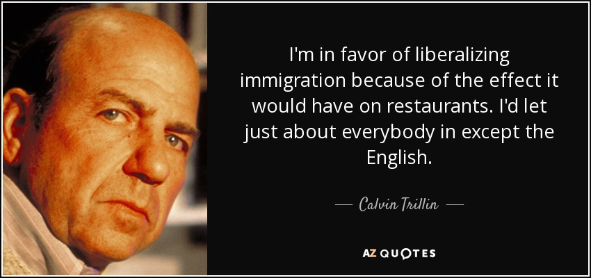 I'm in favor of liberalizing immigration because of the effect it would have on restaurants. I'd let just about everybody in except the English.
