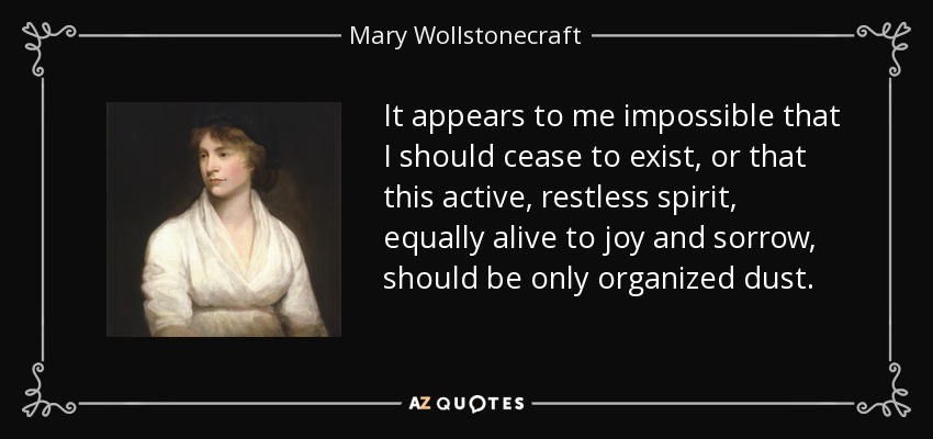 It appears to me impossible that I should cease to exist, or that this active, restless spirit, equally alive to joy and sorrow, should be only organized dust.