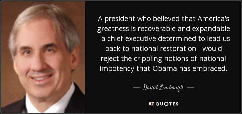 A president who believed that America's greatness is recoverable and expandable - a chief executive determined to lead us back to national restoration - would reject the crippling notions of national impotency that Obama has embraced.
