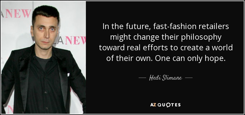 In the future, fast-fashion retailers might change their philosophy toward real efforts to create a world of their own. One can only hope.