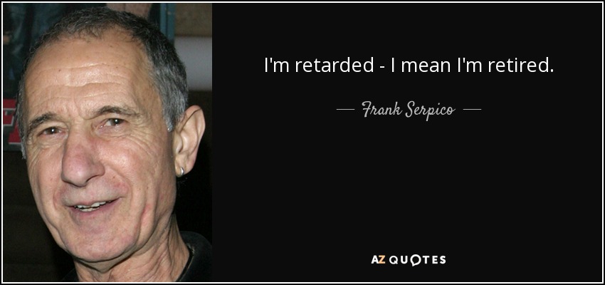 But I've often said that if I had – I have two dogs – if I had two retarded children, I'd be a hero. And yet the dogs, which are pretty much the same thing. What? They're sweet. They're loving. They're kind, but they don't mentally advance at all. Dogs are like retarded children.