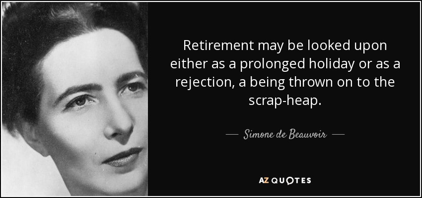 Retirement may be looked upon either as a prolonged holiday or as a rejection, a being thrown on to the scrap-heap.