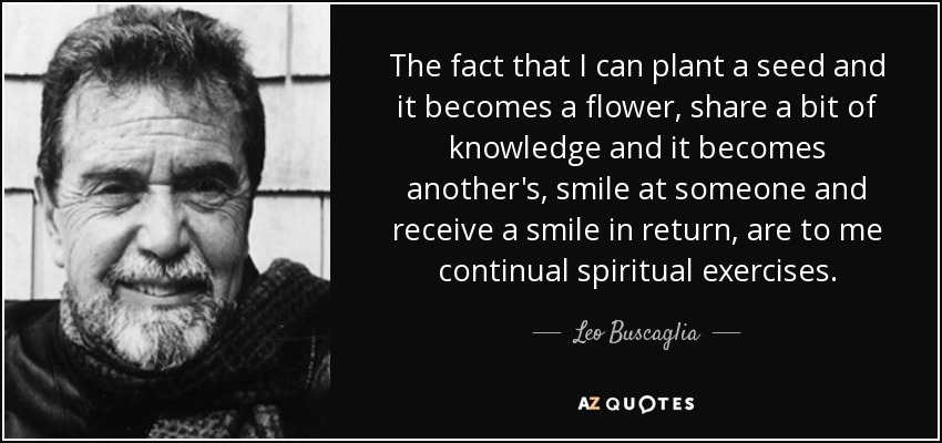 The fact that I can plant a seed and it becomes a flower, share a bit of knowledge and it becomes another's, smile at someone and receive a smile in return, are to me continual spiritual exercises.