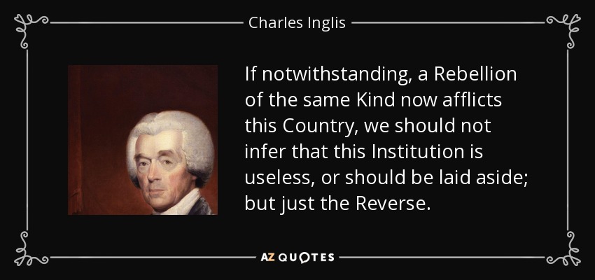 If notwithstanding, a Rebellion of the same Kind now afflicts this Country, we should not infer that this Institution is useless, or should be laid aside; but just the Reverse.