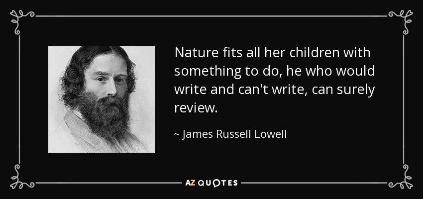 Nature fits all her children with something to do, he who would write and can't write, can surely review.