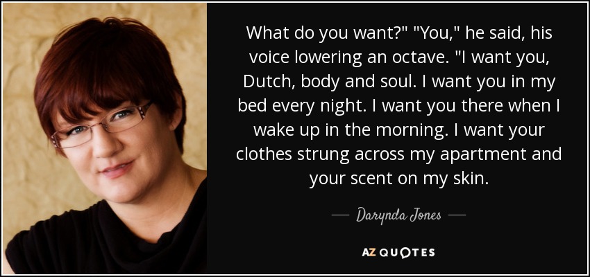 What do you want?" "You," he said, his voice lowering an octave. "I want you, Dutch, body and soul. I want you in my bed every night. I want you there when I wake up in the morning. I want your clothes strung across my apartment and your scent on my skin.