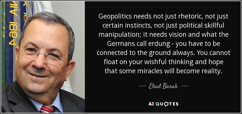 Geopolitics needs not just rhetoric, not just certain instincts, not just political skillful manipulation; it needs vision and what the Germans call erdung - you have to be connected to the ground always. You cannot float on your wishful thinking and hope that some miracles will become reality.