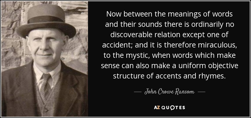 Now between the meanings of words and their sounds there is ordinarily no discoverable relation except one of accident; and it is therefore miraculous, to the mystic, when words which make sense can also make a uniform objective structure of accents and rhymes.