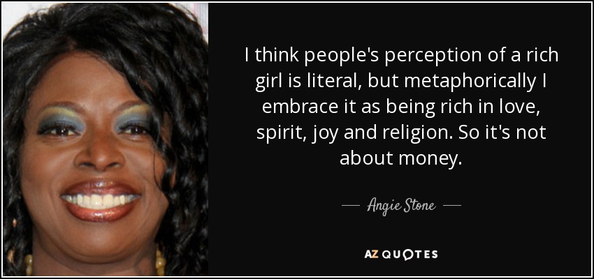 I think people's perception of a rich girl is literal, but metaphorically I embrace it as being rich in love, spirit, joy and religion. So it's not about money.