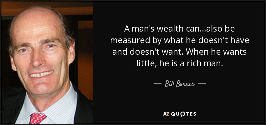 A man's wealth can...also be measured by what he doesn't have and doesn't want. When he wants little, he is a rich man.