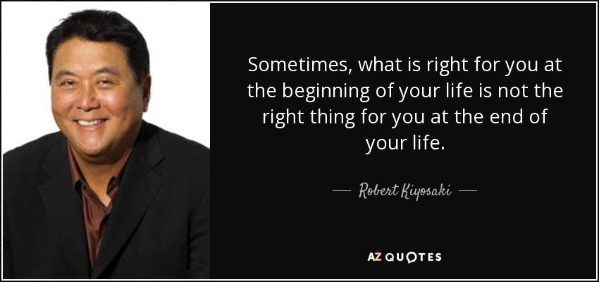 Sometimes, what is right for you at the beginning of your life is not the right thing for you at the end of your life.