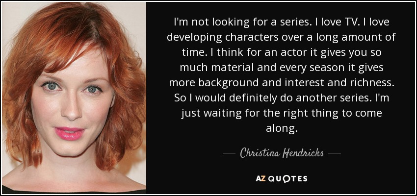 I'm not looking for a series. I love TV. I love developing characters over a long amount of time. I think for an actor it gives you so much material and every season it gives more background and interest and richness. So I would definitely do another series. I'm just waiting for the right thing to come along.