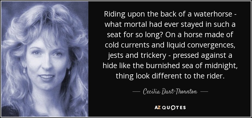 Riding upon the back of a waterhorse - what mortal had ever stayed in such a seat for so long? On a horse made of cold currents and liquid convergences, jests and trickery - pressed against a hide like the burnished sea of midnight, thing look different to the rider.