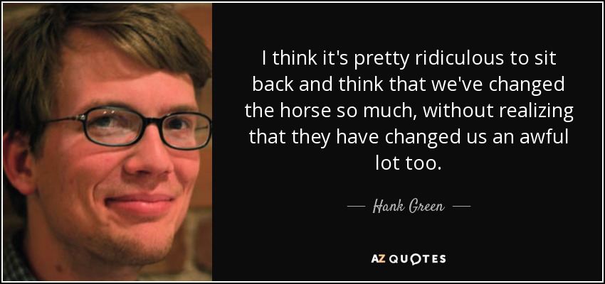 I think it's pretty ridiculous to sit back and think that we've changed the horse so much, without realizing that they have changed us an awful lot too.