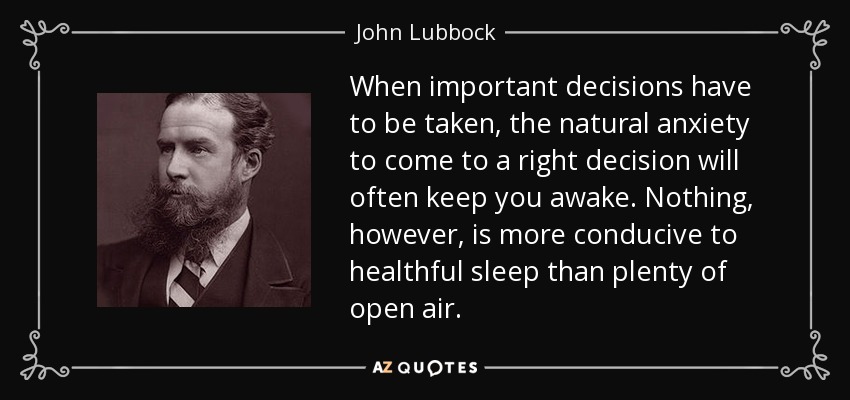 When important decisions have to be taken, the natural anxiety to come to a right decision will often keep you awake. Nothing, however, is more conducive to healthful sleep than plenty of open air.