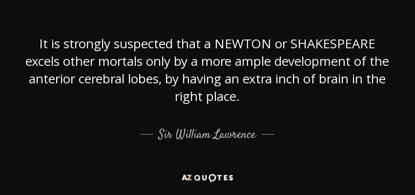 It is strongly suspected that a NEWTON or SHAKESPEARE excels other mortals only by a more ample development of the anterior cerebral lobes, by having an extra inch of brain in the right place.