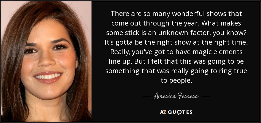 There are so many wonderful shows that come out through the year. What makes some stick is an unknown factor, you know? It's gotta be the right show at the right time. Really, you've got to have magic elements line up. But I felt that this was going to be something that was really going to ring true to people.
