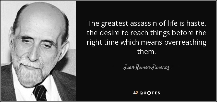 The greatest assassin of life is haste, the desire to reach things before the right time which means overreaching them.