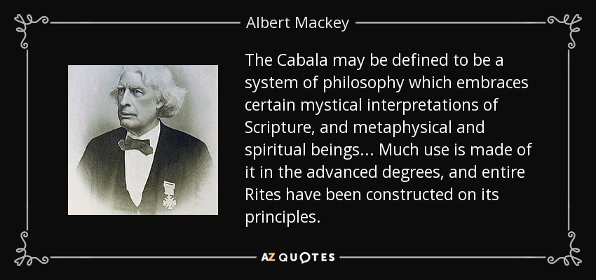 The Cabala may be defined to be a system of philosophy which embraces certain mystical interpretations of Scripture, and metaphysical and spiritual beings... Much use is made of it in the advanced degrees, and entire Rites have been constructed on its principles.