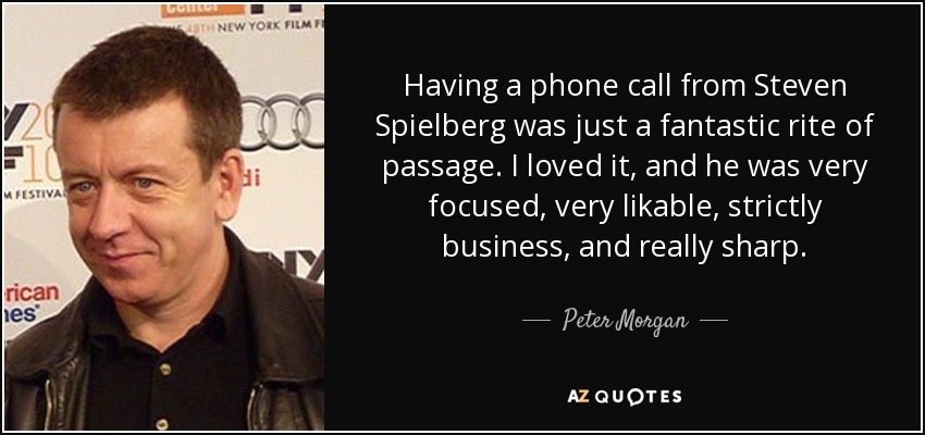 Having a phone call from Steven Spielberg was just a fantastic rite of passage. I loved it, and he was very focused, very likable, strictly business, and really sharp.