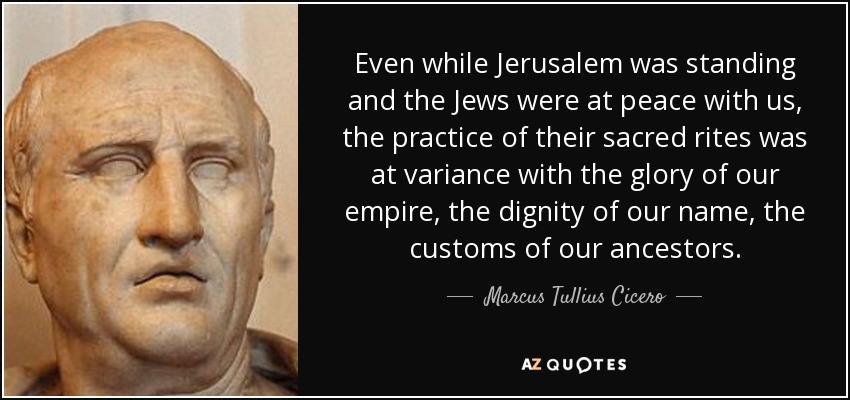 Even while Jerusalem was standing and the Jews were at peace with us, the practice of their sacred rites was at variance with the glory of our empire, the dignity of our name, the customs of our ancestors.