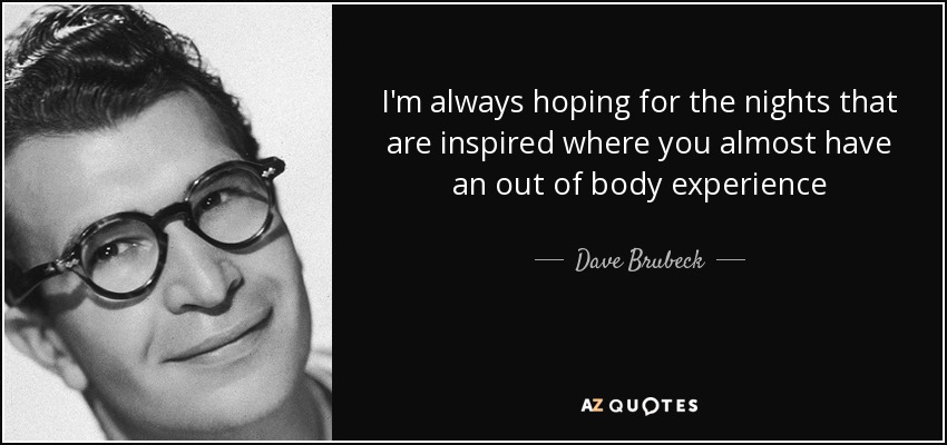 I'm always hoping for the nights that are inspired where you almost have an out of body experience